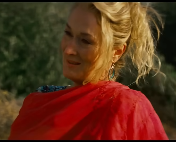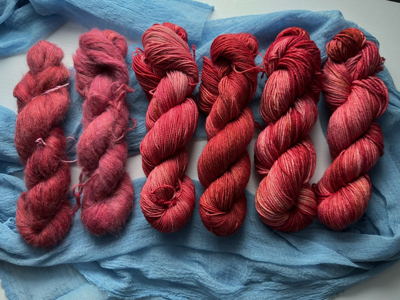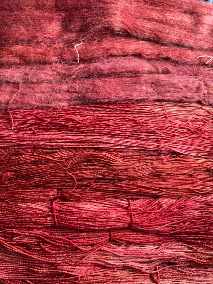 Meryl Streep does some of the best scarf-based acting ever in this scene - it's emotional and beautiful, her last words to her former lover before her daughter's wedding. This colorway was stuck in my head as soon as I decided to create this collection, a pinkish orange/red that has a lot of depth to it.